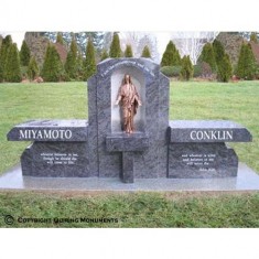0.00ITEM #: QCU 022Polished finishes contrast with rock pitch on this Quiring Custom Upright memorial. This granite bench memorial offers room on an attached tablet with room for inscription as well as seating.
