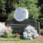The circular focal point for this bench monument is configured to represent the communion host that is a central part of the Catholic religion.